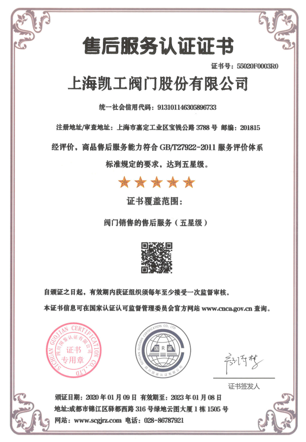 售后服務(wù)認(rèn)證證書