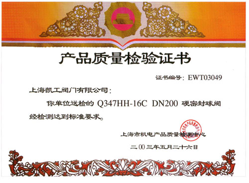 Q347HH-16C檢驗(yàn)證書
