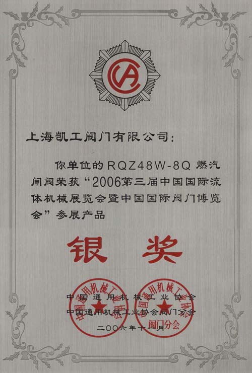 燃?xì)忾l閥銀獎(jiǎng)