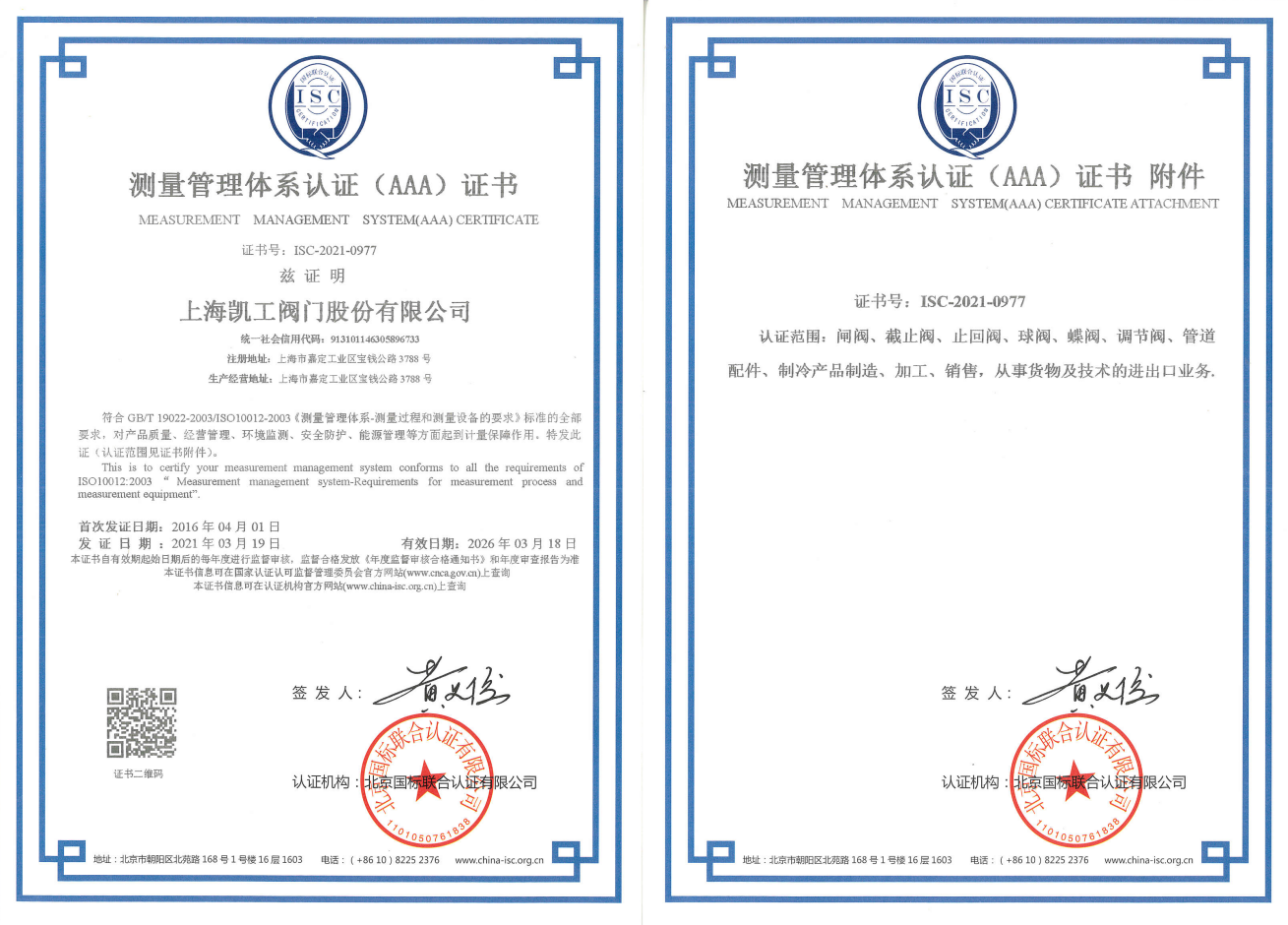 測(cè)量管理體系證書