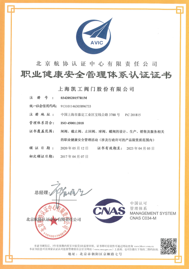 職業(yè)健康安全管理體系認(rèn)證證書